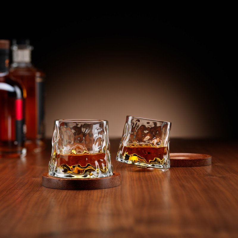 Περιστρεφόμενα Ποτήρια Ουίσκι με Σουβέρ (Σετ 2 τμχ)
