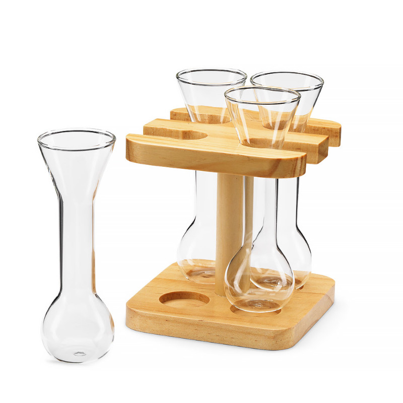 Ένα σετ ποτήριών σε ξύλινη βάση και χωρητικότητας 55ml, για να απολαύσετε την αγαπημένη σας μπύρα.