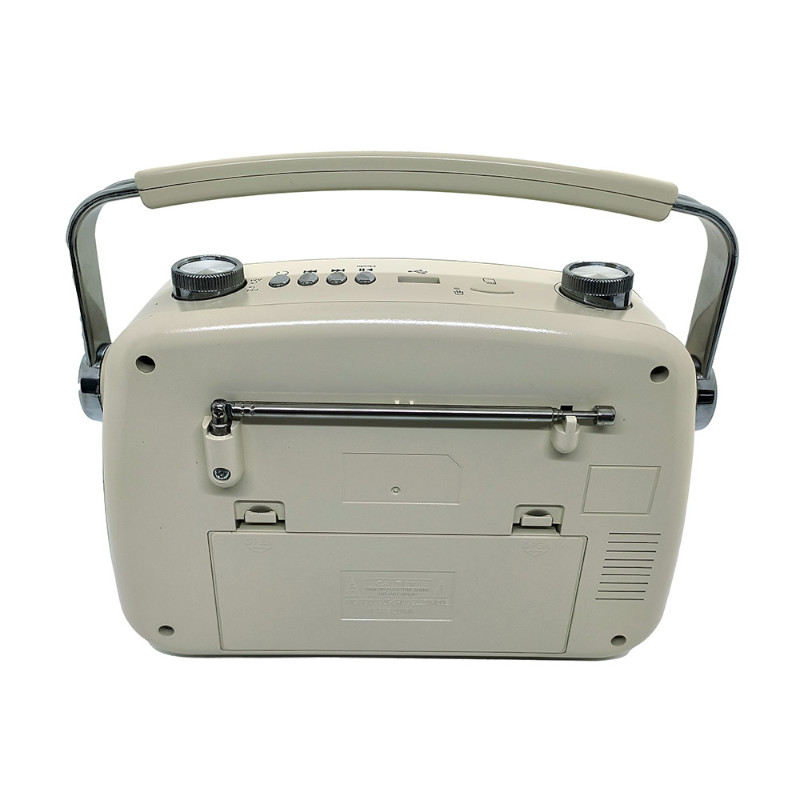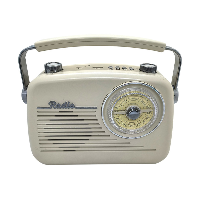 Το Retro ραδιόφωνο σε κρεμ χρώμα είναι ένα φορητό ραδιόφωνο/ηχείο που συνδυάζει vintage αισθητική με σύγχρονη τεχνολογία.