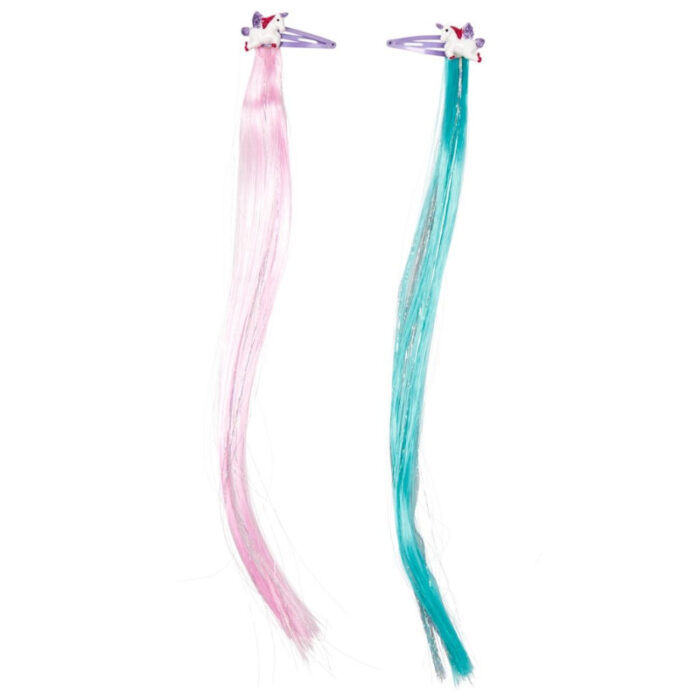 Ένα υπέροχο σετ με 4 κοκκαλάκια, κλικ κλακ, για τα μαλλιά, με έναν μονόκερο το καθένα και χρωματιστή τούφα με γκλίτερ , που θα διακοσμήσει τα μαλλιά σου.