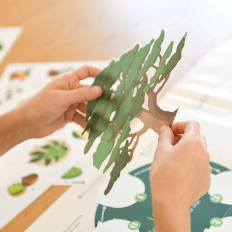 Με αυτή την αφίσα, τα παιδιά θα παθιαστούν με τα δέντρα: ποιες είναι οι κατηγορίες δέντρων; Πώς να αναγνωρίσετε τα πιο διάσημα αποστάγματα; Ποιο οικοσύστημα περιβάλλει ένα μεγάλο δέντρο σε ένα δάσος; Τα παιδιά κολλάνε τα αυτοκόλλητα στην γιγαντιαία αφίσα, δημιουργώντας έτσι μια όμορφη παράσταση με θέμα τη φύση.