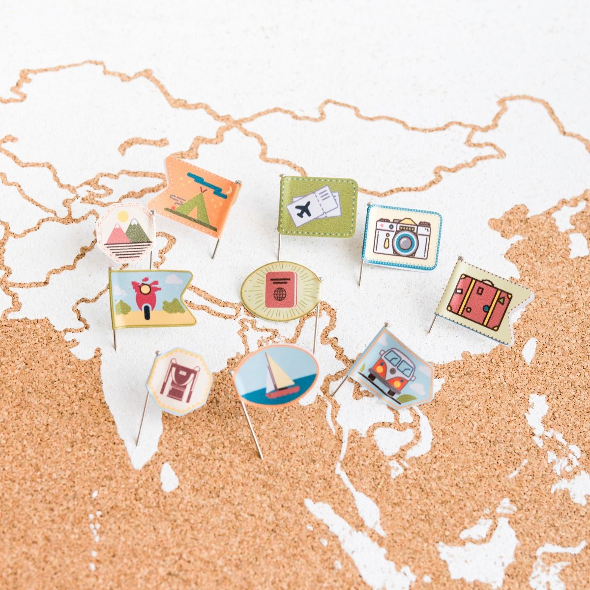 Αφήστε μας να σας παρουσιάσουμε διαφορετικά σετ αυτοκόλλητων, ιδανικά για να διακοσμήσετε το χάρτη σας, να μην ξεχάσετε ποτέ τα ταξίδια σας και να σχεδιάσετε τις επόμενες περιπέτειες σας.