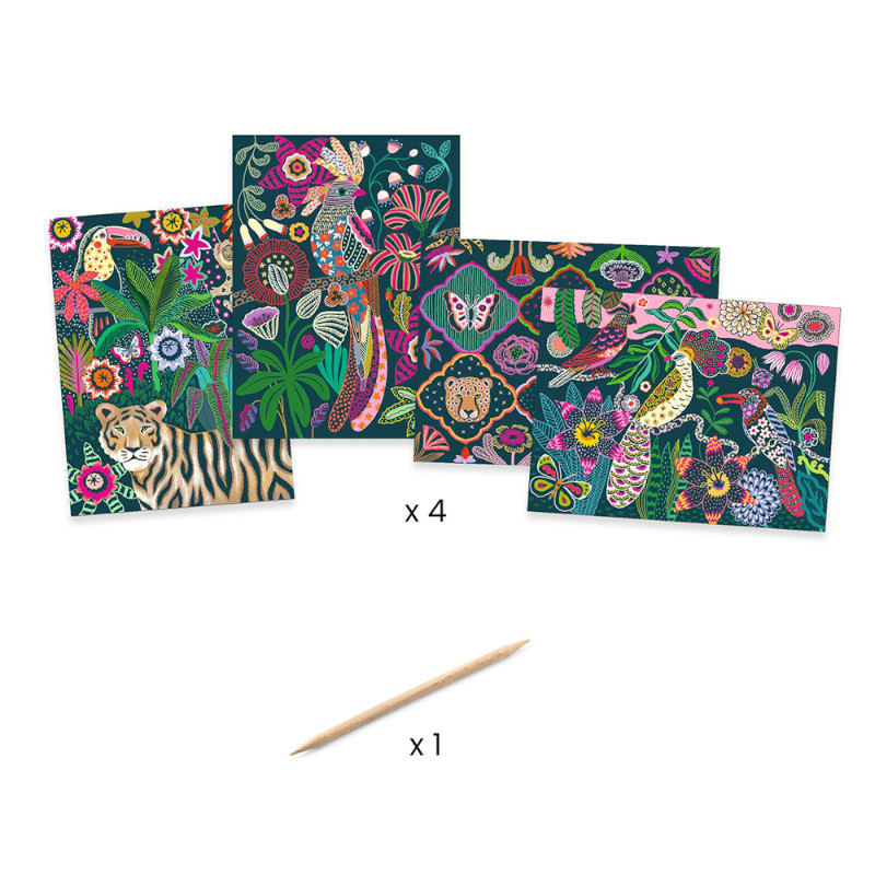 Ξύστε την εικόνα και ανακαλύψτε πρωτότυπες παραστάσεις που εμφανίζονται, χάρη σε αυτό το σετ της εταιρείας Djeco! Ξύνοντας την εικόνα με το ειδικό εργαλείο σε συγκεκριμένα μοτίβα, αποκαλύπτονται τα χρώματα που κρύβονται από κάτω και εμφανίζονται φανταστικές τίγρεις. Η ιδιαίτερη αυτή ενασχόληση ενισχύει τη λεπτή κινητικότητα του παιδιού, τη συγκέντρωση καθώς επίσης και την αισθητική νοημοσύνη του. Το σετ περιλαμβάνει 4 εικόνες με διαφορετικά σχέδια και 1 στυλό.
