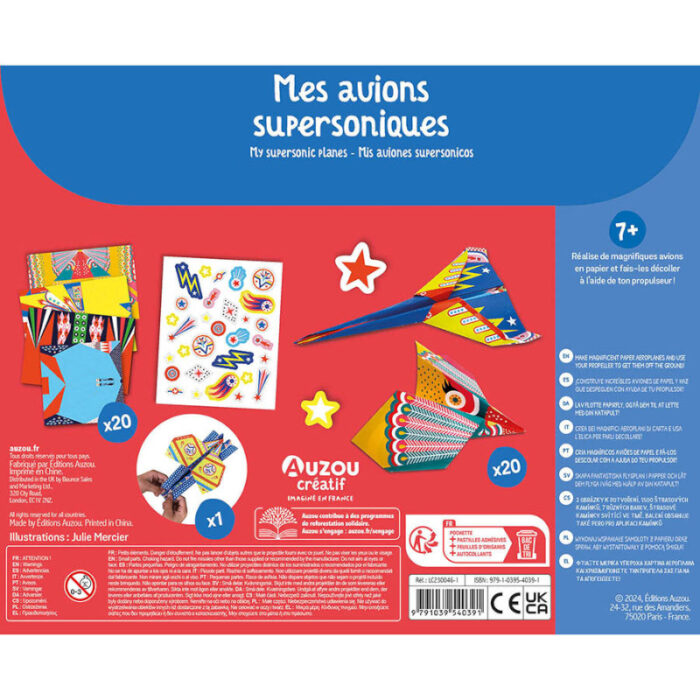 Κατασκευάστε τα πιο πολύχρωμα και εντυπωσιακά αεροπλάνα, αξιοποιώντας την ιδιαίτερη τέχνη του οριγκάμι. Στη συσκευασία περιλαμβάνονται 20 φύλλα, με προσχεδιασμένες γραμμές οδηγούς, για να φτιάξετε 20 διαφορετικά αεροπλάνα καθώς και πολλά αυτοκόλλητα για να τα διακοσμήσετε και να τους δώσετε το δικό σας μοναδικό στυλ. Αφού τελειώσετε τα αεροπλανάκια σας, χρησιμοποιήστε την προπέλα που θα βρείτε στο κουτί, για να τα εκτοξεύσετε στον αέρα! Διαστάσεις συσκευασίας: 24.5 x 20 x 1 εκ. Ηλικία: Από 7 ετών.