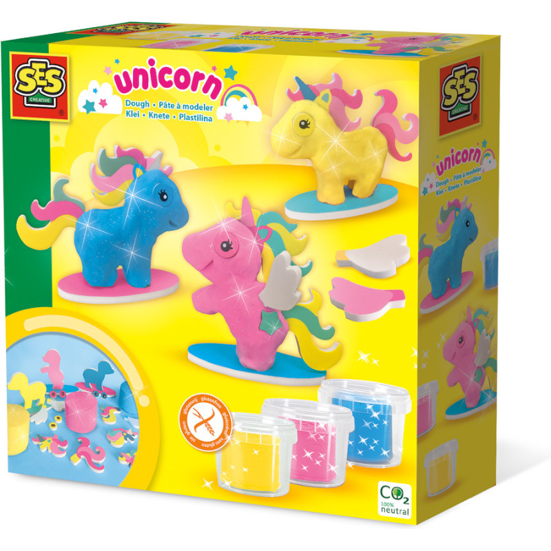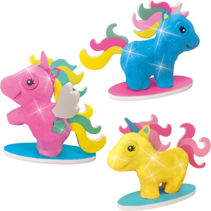 Η κατασκευή μονόκερων από ζύμη είναι πολύ πιο εύκολη με τα αφρώδη ειδώλια που συνοδεύουν αυτό το σετ. Χρησιμοποιήστε τη ζύμη glitter για να καλύψετε τα ειδώλια από αφρό και να δημιουργήσετε τους δικούς σας όμορφους μονόκερους. Μπορείτε να τελειώσετε τους μονόκερους σας με τη χαίτη, την ουρά, τα φτερά και τα μάτια από αφρό.