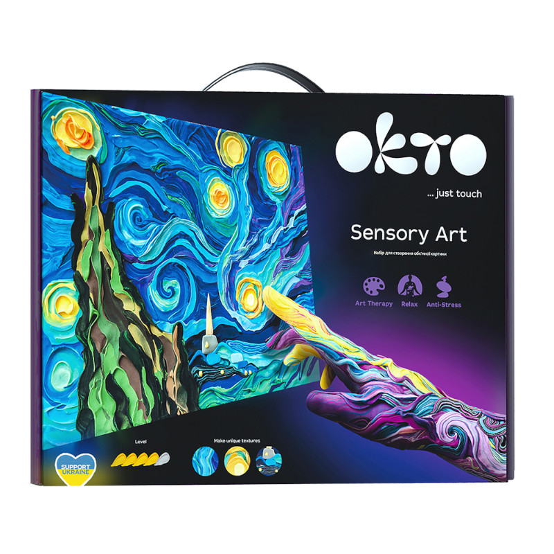 Μοναδικό σετ για να αναπτύξετε τη δημιουργικότητά σας, αλλά και για να διακοσμήσετε τον χώρο σας ή να το προσφέρετε σαν δώρο. Δημιουργήστε μία εντυπωσιακή εικόνα απλώνοντας και σμιλεύοντας με τα δάχτυλά σας τον πηλό πάνω στον καμβά. Αυτή η δραστηριότητα σίγουρα θα σας ενθουσιάσει, αλλά και θα σας χαλαρώσει, αφού μπορεί να βοηθήσει να ξεφύγετε από την καθημερινή ρουτίνα και να απαλλαγείτε από το άγχος!