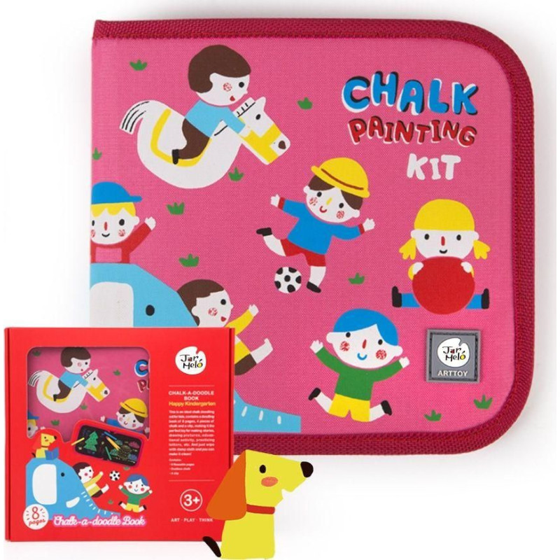 Περιέχει 4 κιμωλίες, τη πλαστική θήκη για να τις κρατάς πιο εύκολα, μία ενσωματωμένη θηκούλα για να τις φυλάς και 8 σελίδες που θα τις γεμίζεις με τις δημιουργίες σου.