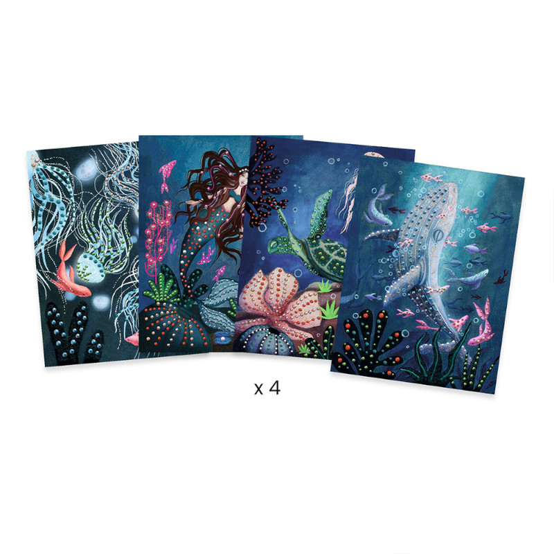 Χειροτεχνία με ζωγραφική και τρισδιάστατο εφέ της εταιρίας Djeco. Τα παιδιά χρησιμοποιούν μοναδικές ανάγλυφες μπογιές για να στολίσουν 4 κάρτες με εντυπωσιακά θαλάσσια ζώα! Χρησιμοποιώντας είτε τα ειδικά σωληνάρια για να δημιουργήσουν βούλες και γραμμές, είτε το πινέλο για να γεμίσουν μεγαλύτερες επιφάνειες, θα καταφέρουν να συνθέσουν ιδιαίτερες εικόνες με ανάγλυφη υφή. Το τρισδιάστατο εφέ, το γκλίτερ και οι μαργαριταρένιες αποχρώσεις οδηγούν σε ένα εντυπωσιακό τελικό αποτέλεσμα που μπορεί να γίνει ιδανική επιλογή για το στολισμό του παιδικού δωματίου. Μια πρωτότυπη χειροτεχνία που μαθαίνει στα παιδιά να ακολουθούν οδηγίες βήμα προς βήμα, συμβάλλει στη συγκέντρωση και την ανάπτυξη της λεπτή κινητικότητας τους, ενώ παράλληλα καλλιεργεί την φαντασία, την επιμονή και την αυτοπεποίθηση τους. Το σετ περιλαμβάνει 4 κάρτες με ζώα (21 x 28 εκ), 8 σωληνάρια σε βολικό μέγεθος με διαφορετικές μπογιές, 1 πινέλο και εικονογραφημένες οδηγίες.