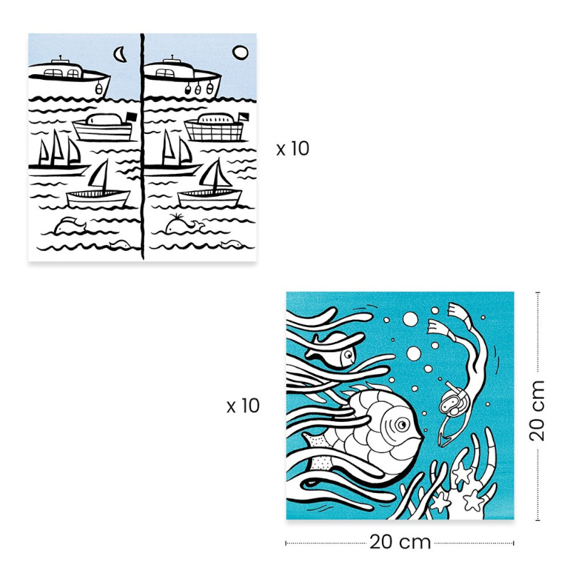 Σετ χειροτεχνιών για ζωγραφική με θέμα τον ωκεανό της εταιρίας Djeco. Αφού ανοίξουν το κουτί, τα παιδιά καλούνται να τραβήξουν ένα φύλλο από τη συσκευασία και να ανακαλύψουν μια εικόνα-έκπληξη για να ζωγραφίσουν! Το παιχνίδι περιλαμβάνει 10 κάρτες για ζωγραφική και 10 κάρτες με παιχνίδια, όπως λαβύρινθοι, βρες τις διαφορές ή ζωγραφική με αριθμούς, μέσα σε μία πρακτική συσκευασία που μεταφέρεται εύκολα. Μια ευχάριστη απασχόληση που αναπτύσσει την λεπτή κινητικότητα των παιδιών και καλλιεργεί τη φαντασία και τη δημιουργικότητα τους.