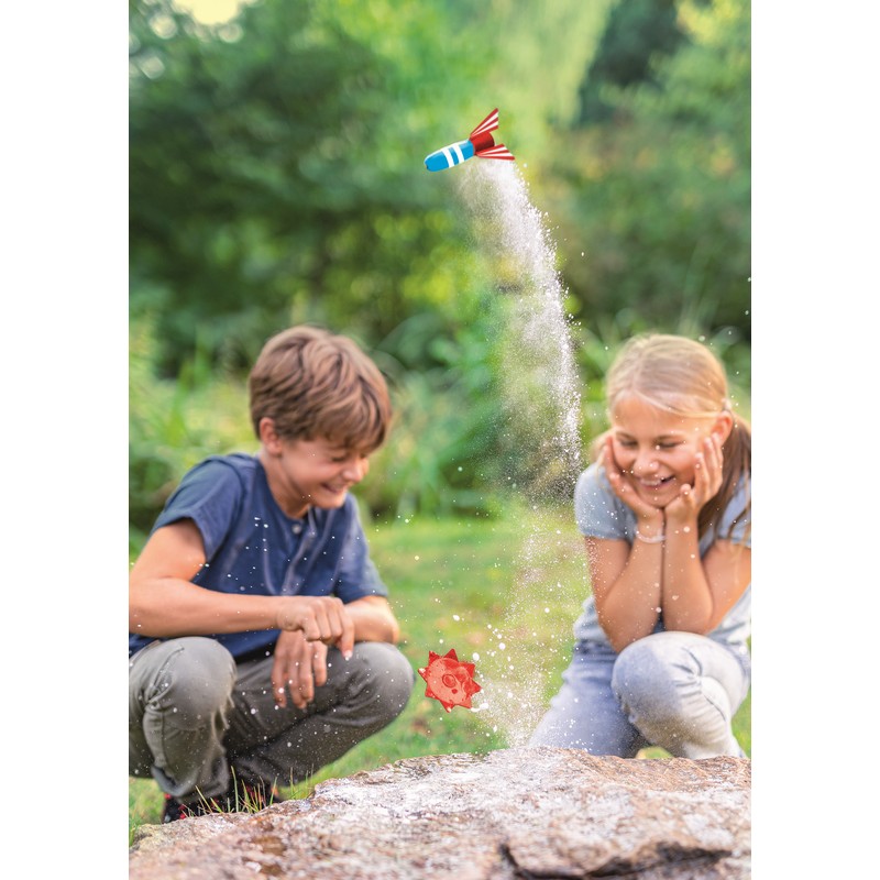 Πύραυλος που εκτοξεύεται με την ανάμειξη μαγειρικής σόδας και ξιδιού. Γεμίστε τα 2/3 του πυραύλου με σόδα και λίγο ξύδι. Κλείστε το γρήγορα με τη βάση, “καλυφθείτε” και δείτε το να εκτοξεύεται.