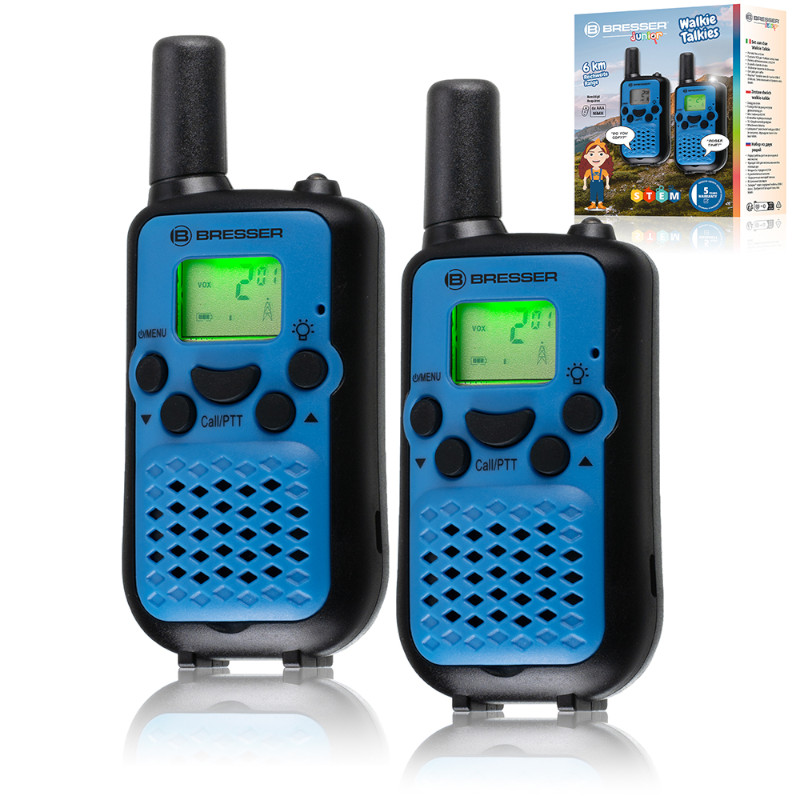 Εξερευνήστε τον κόσμο και μείνετε σε επαφή, με τους ασύρματους πομποδέκτες της Bresser Junior για παιδιά! Βγείτε στην ύπαιθρο, χωριστείτε και ενημερώστε ο ένας τον άλλον για τις ανακαλύψεις σας ή χρησιμοποιήστε τους ασύρματους πομποδέκτες για να ανταλλάξετε μυστικά μηνύματα για τους αντιπάλους σας! Για να αποτρέψετε την υποκλοπή, μπορείτε να ελέγξετε την ένταση και να επιλέξετε από 8 διαφορετικά κανάλια στενής ζώνης. Χάρη στην εξαιρετικά μεγάλη εμβέλεια έως και 6 km, μπορείτε να παραμένετε σε επαφή με τους άλλους ακόμα και σε μεγάλες αποστάσεις. Οι πομποδέκτες έχουν επίσης 10 διαφορετικούς ήχους κλήσης για να διαλέξετε.