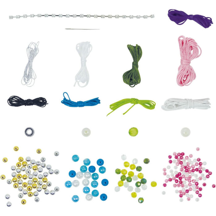Περιλαμβάνει όλα τα αξεσουάρ για την κατασκευή 5 βραχιολιών: ποικιλία από χάντρες, κορδόνι κεριού, βαμβακερή κλωστή…