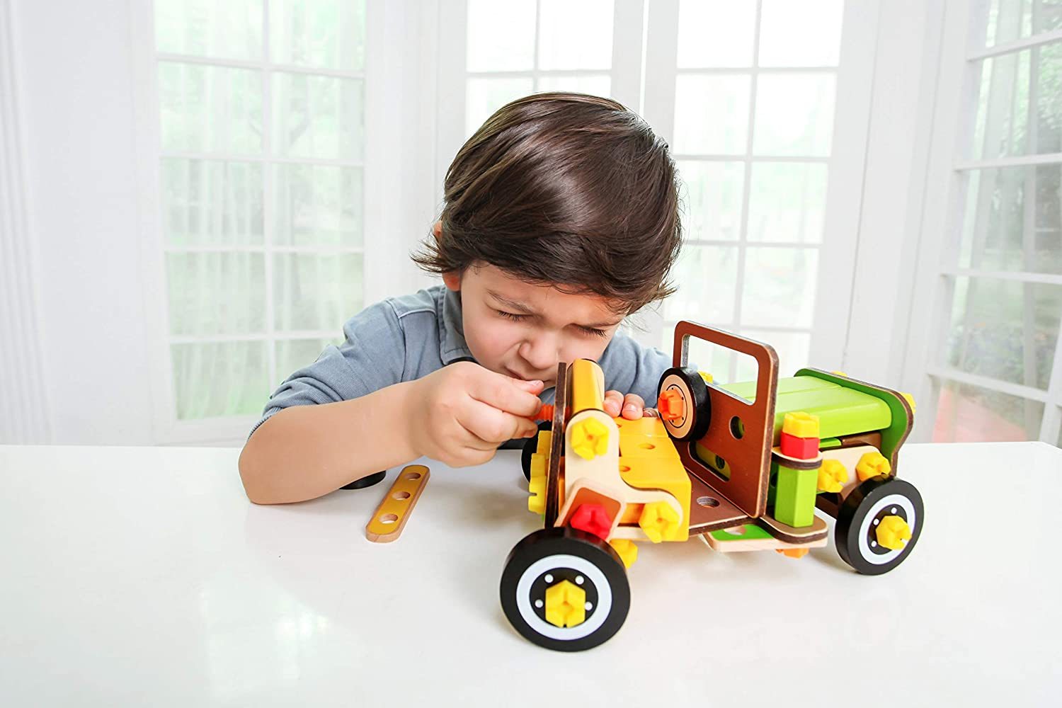 Κατασκευή ξύλινου τζίπ με βίδες και παξιμάδια.