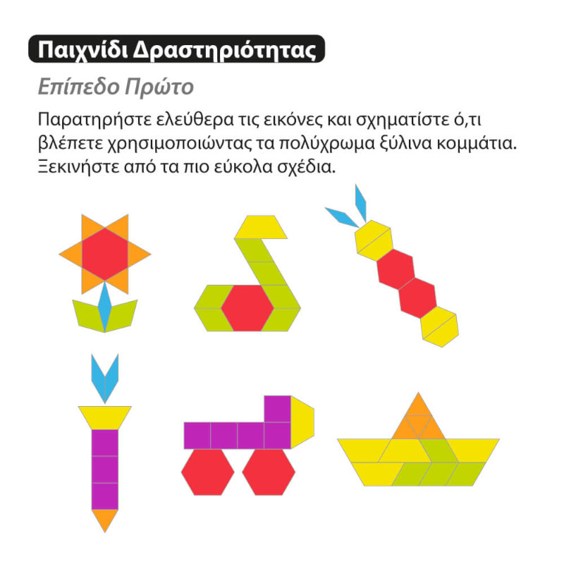 Παιχνίδι Δραστηριότητας: Σχηματίστε εικόνες που δίνονται χρησιμοποιώντας τα πολύχρωμα ξύλινα κομμάτια.