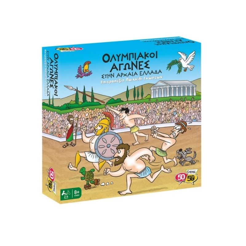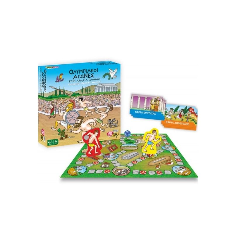 Πρόκειται για ένα επιτραπέζιο παιχνίδι γνώσεων σχεδιασμένο από την εταιρεία 5050Games. Μάθε τα πάντα για τους Ολυμπιακούς Αγώνες, λάβε μέρος και κατάκτησε όσο περισσότερα αγωνίσματα μπορείς έτσι ώστε να στεφθείς ολυμπιονίκης κατακτώντας ένα κλαδί ελιάς! Από την πάλη και τη δισκοβολία έως και το άλμα και τον ακοντισμό, το ταξίδι στην αρχαία Ελλάδα θα σου μείνει αξέχαστο! Στη συσκευασία περιλαμβάνονται: 1 ταμπλό, 40 κάρτες ερωτήσεων, 20 κάρτες αποστολών, 48 σύμβολα κατάκτησης, 4 πιόνια αθλητών με τις βάσεις τους, 1 ζάρι καθώς και φύλλο με οδηγίες.