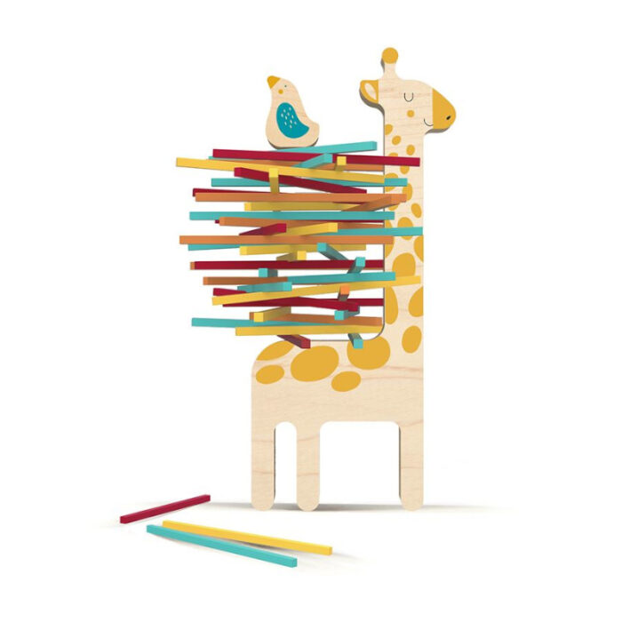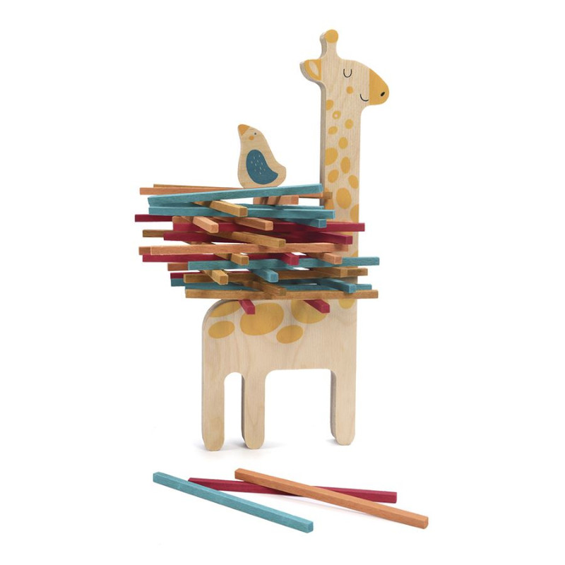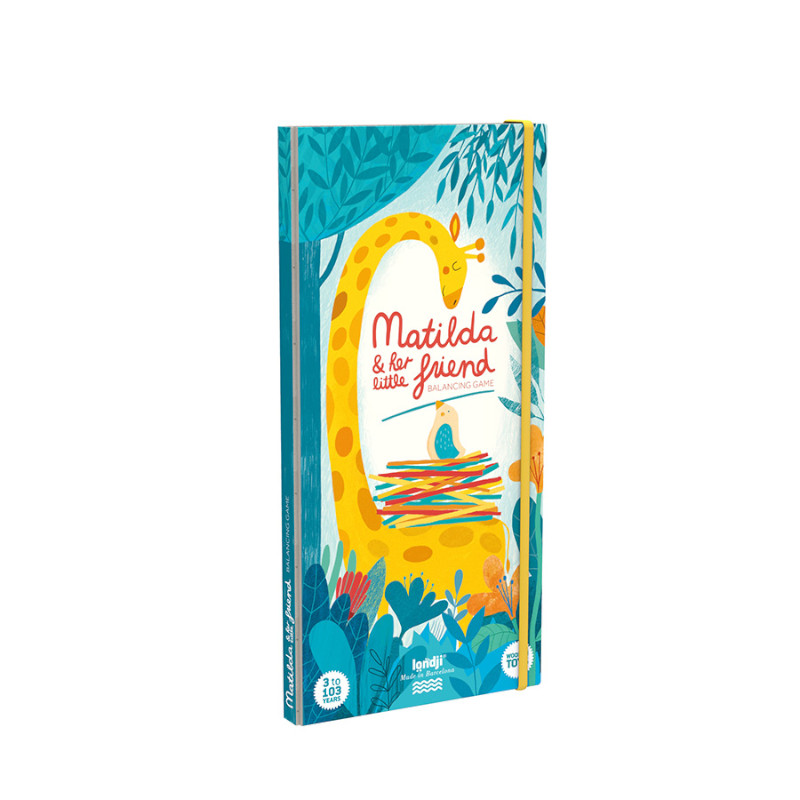 Η Ματίλντα και οι φίλοι της έχουν ένα πρόβλημα: πρέπει να φτιάξουν μια φωλιά. Βοηθήστε τους παίζοντας το υπέροχο αυτό παιχνίδι ισορροπίας, ένα εκπληκτικό παιχνίδι ικανοτήτων, ειδικά σχειδασμένο για μικρά παιδιά (από 3 ετών). Το σετ περιλαμβάνει 2 πανέμορφα ξύλινα ζώα, μια καμηλοπάρδαλη και ένα πουλί και 40 χρωματιστά ξυλάκια. Στερεώστε τα ξυλάκια στην καμηλοπάρδαλη και μόλις τελειώσετε τοποθετήστε το πουλί: αν σταθεί, κερδίζετε. Θα χρειαστείτε ικανότητες, ακρίβεια και ενδεχομένως και λίγη τύχη! Αυτό το παιχνίδι είναι τόσο φανταστικό, που θα το λατρέψουν και οι ενήλικες! Παίζεται με 2 έως 6 παίκτες. Κατασκευάζεται στη Βαρκελώνη. Διαστάσεις: 15 x 32 x 2 εκ.