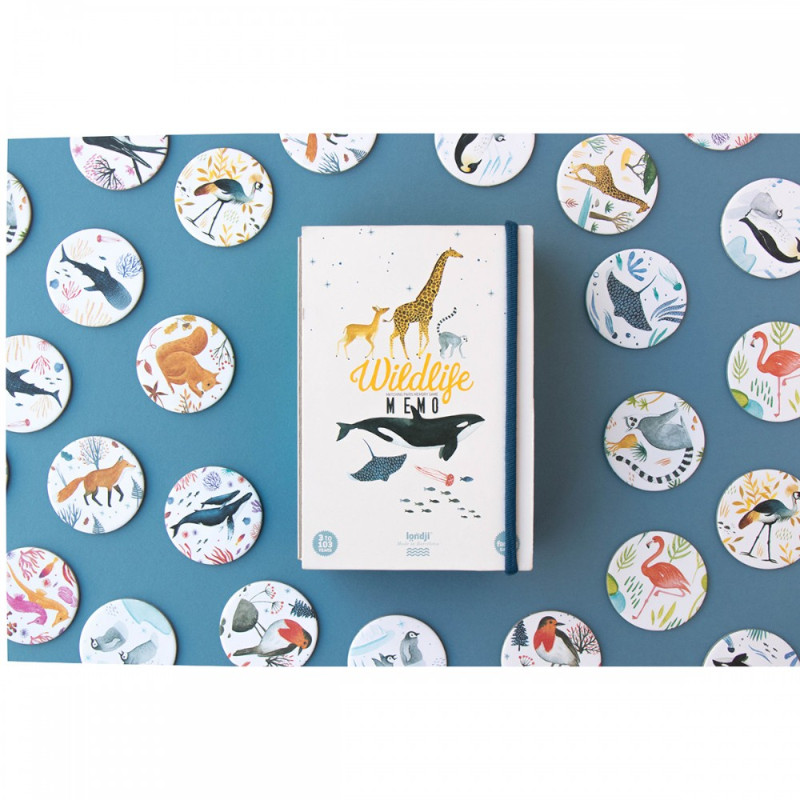 Γνωρίστε τα ζωάκια της άγριας φύσης μέσα από αυτό το υπέροχα εικονογραφημένο παιχνίδι μνήμης της Londji! Το παιχνίδι αποτελείται από 32 κάρτες, από ανακυκλωμένο χαρτί και χαρτόνι, που απεικονίζουν λεμούριους, καμηλοπαρδάλεις, φάλαινες, αλεπούδες, σκίουρους κ.α. πολλά ζωάκια. Από 3 ετών.