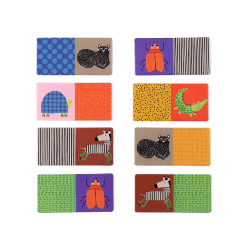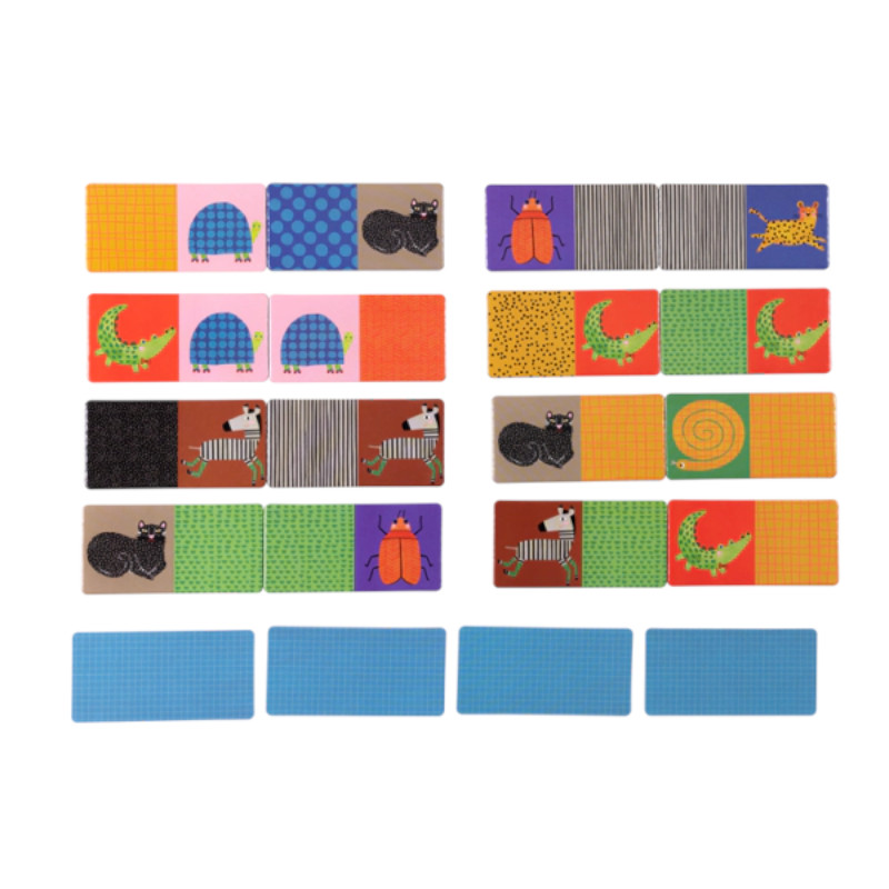 Παιχνίδι πρώιμης εκμάθησης από χαρτόνι με ζώα και μοτίβα Toupitis στη μία πλευρά και από την άλλη, ένα παιχνίδι ντόμινο με μεγάλα λευκά πουά σε κόκκινο φόντο. Παιχνίδι παρατήρησης, μάθησης αριθμών, χρωμάτων και σχημάτων. Από 3 ετών.