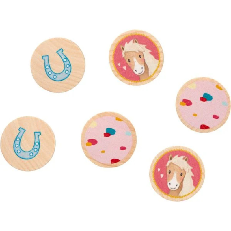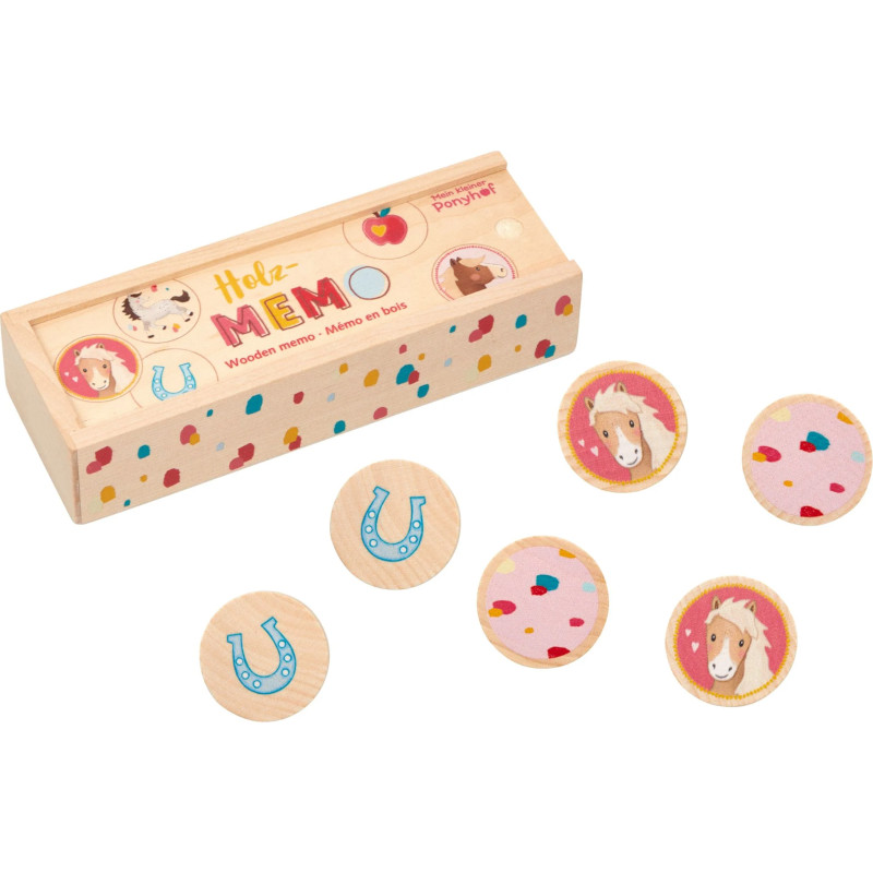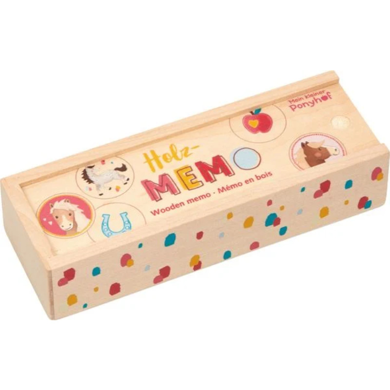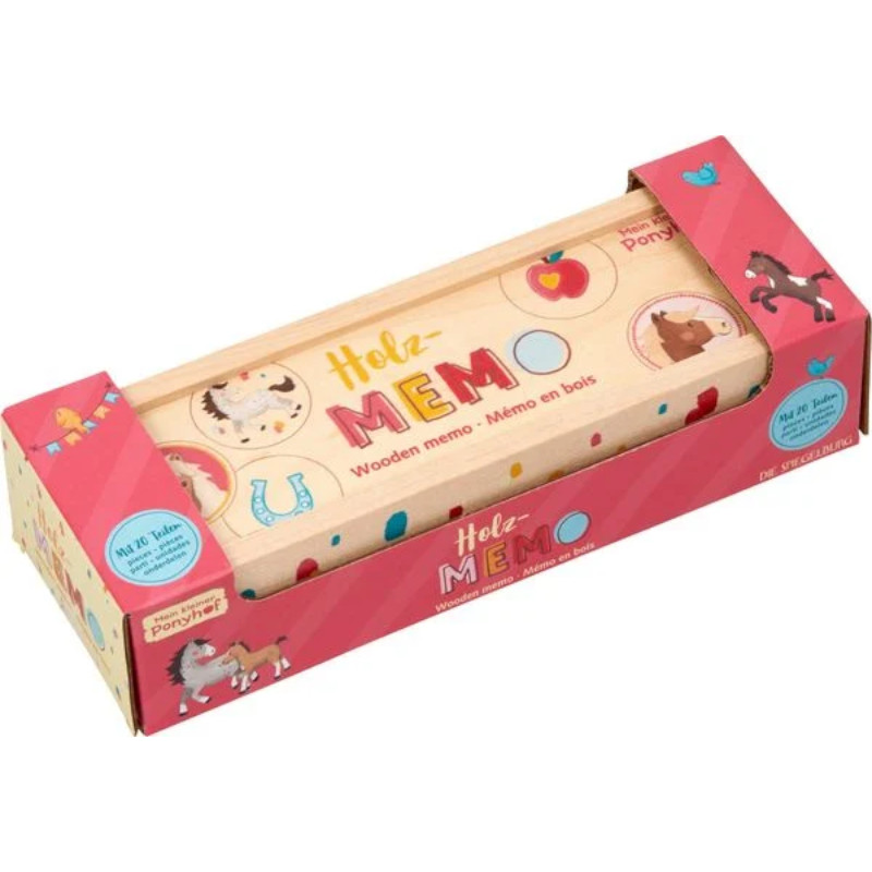 My Little Pony Farm: Το ξύλινο παιχνίδι μνήμης από το Die Spiegelburg είναι ένα τέλειο παιχνίδι για μικρούς εξερευνητές και λάτρεις των αλόγων! Με 10 όμορφα σχεδιασμένα ζεύγη εικόνων, προσφέρει μια υπέροχη ευκαιρία να εκπαιδεύσετε παιχνιδιάρικα τη μνήμη ανακαλύπτοντας τον μαγικό κόσμο της φάρμας πόνυ. Το εύχρηστο ξύλινο κουτί αποθηκεύει με ασφάλεια τις κάρτες μνήμης και είναι ιδανικό για χρήση εν κινήσει. Μεμονωμένα, οι κάρτες μνήμης έχουν πάχος περίπου 0,5 cm και διάμετρο 4 cm—το τέλειο μέγεθος για τα χέρια μικρών παιδιών.