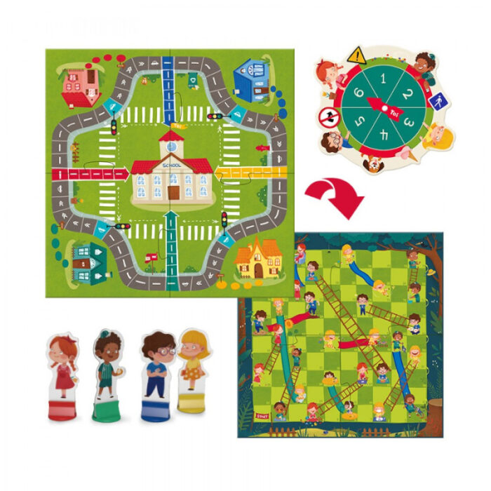 Ένα επιτραπέζιο που θα ενθουσιάσει τα παιδιά καθώς συνδυάζει 2 διαφορετικά παιχνίδια: Τον Γκρινιάρη και το Φιδάκι! Στο πρώτο, τα παιδιά πρέπει να βοηθήσουν τους χαρακτήρες να φτάσουν, με ασφάλεια, απο το σπίτι στο σχολείο και με αυτόν τον τρόπο μαθαίνουν βασικούς κανόνες κυκλοφοριακής αγωγής. Στο Φιδάκι, μαθαίνουν για τις καλές και τις κακιές συνήθειες μέσα απο ένα ταμπλό όπου πρέπει να μετακινήσουν τα πιόνια τους απο την εκκίνηση στον τερματισμό!