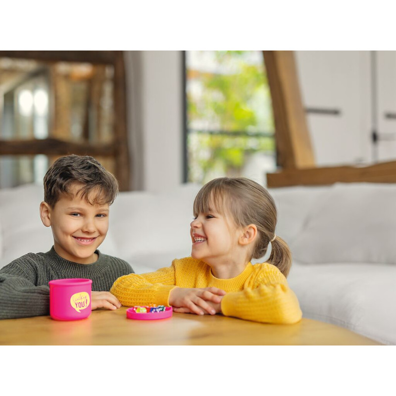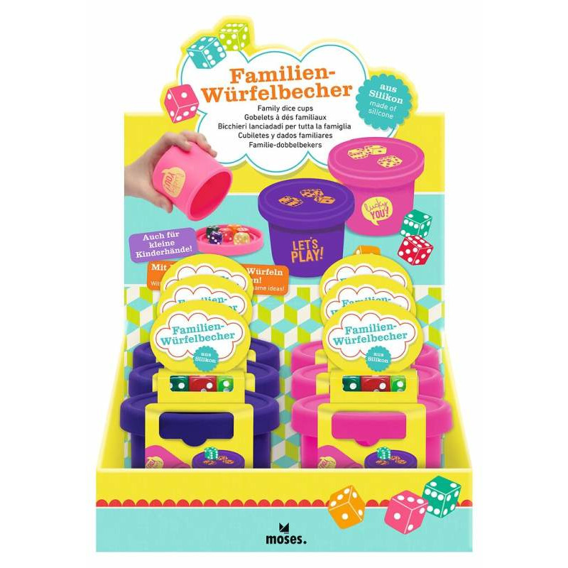 Με το **Family Dice Cup** από τον Moses, μπορείτε να ζήσετε ήσυχες και πολύχρωμες στιγμές διασκέδασης στο σπίτι ή εν κινήσει! Το εύκαμπτο κύπελλο σιλικόνης μειώνει τον ήχο της ρίψης των ζαριών και με τα έξι χρωματιστά ζάρια και τις τρεις δημιουργικές ιδέες παιχνιδιού, η αυθόρμητη ψυχαγωγία είναι εγγυημένη.