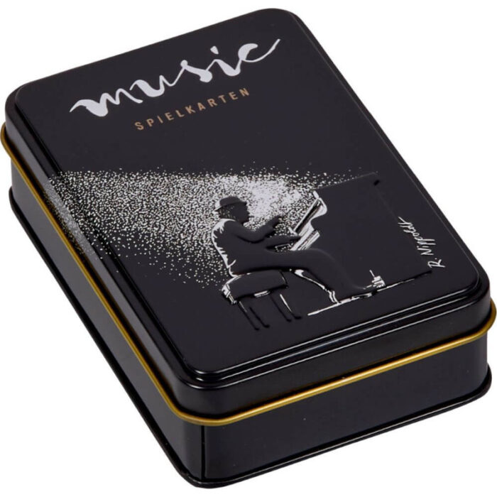 Μία υπέροχη τράπουλα σε μεταλλικό ανάγλυφο κουτί, ιδανική για τους μουσικόφιλους. Κάθε φύλλο, έχει κάποια εικόνα γνωστού τραγουδιστή, όπως και κάθε φύλλο αριθμών, έχει την εικόνα κάποιου μουσικού όργάνου.