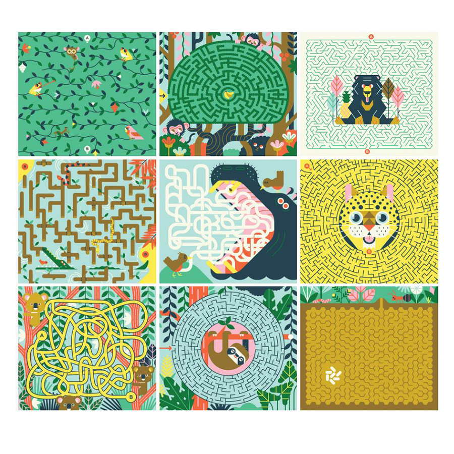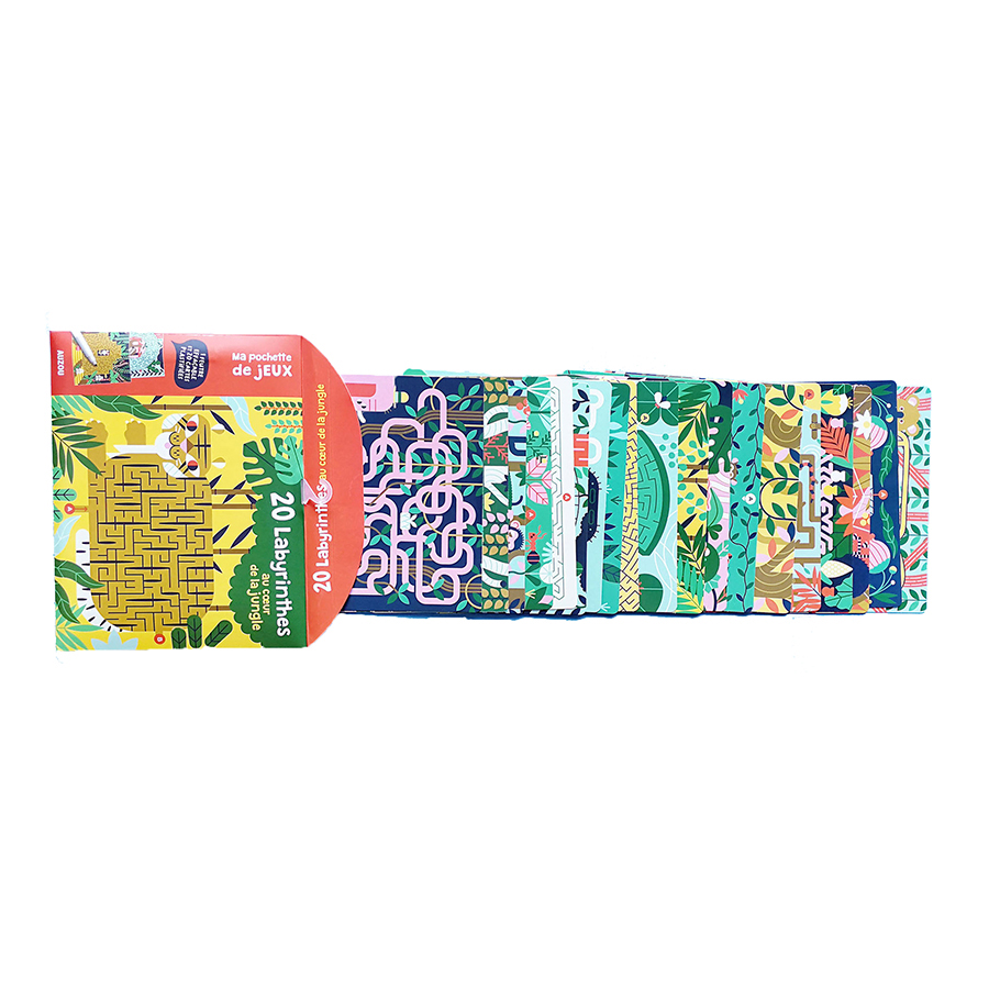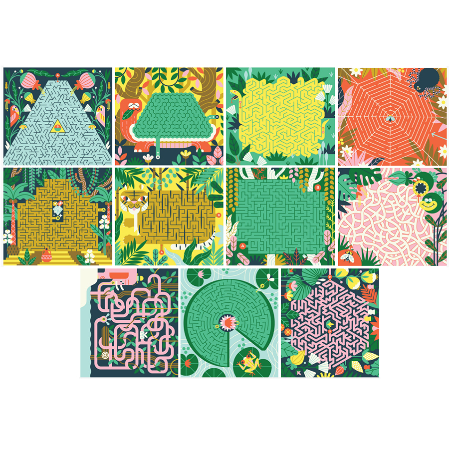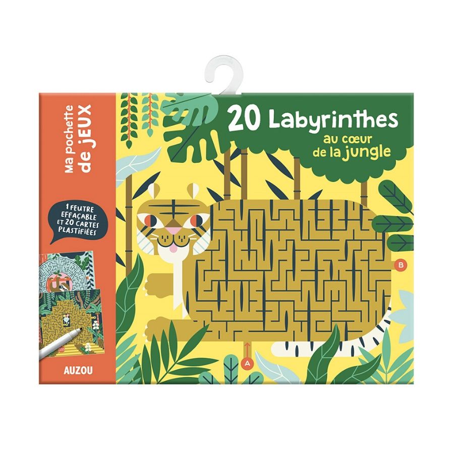 Διασκέδασε λύνοντας λαβύρινθους μέσα από εικόνες από τη ζούγκλα. Αφού ολοκληρώσεις γύρισε τις κάρτες ανάποδα, φτιάξε ένα γιγάντιο παζλ και λύσε το λαβύρινθο που σχηματίστηκε. Το σετ περιλαμβάνει 19 μικρούς λαβύρινθους, ένα γιγάντιο, ένα ειδικό μαρκαδόρο με γόμα, για να σβήνεις και να παίζεις ξανά και ξανά, και τις λύσεις των παιχνιδιών.