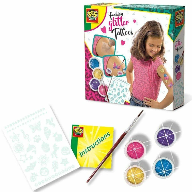 Το SES Creative Fashion Glitter Tattoos δίνει στα παιδιά τη δυνατότητα να διακοσμήσουν το σώμα τους με λαμπερά, πολύχρωμα τατουάζ που ξεχωρίζουν! Ενισχύει τη φαντασία και την έκφραση της προσωπικότητας, ενώ προσφέρει μια ασφαλή και διασκεδαστική δραστηριότητα δημιουργίας προσωρινών τατουάζ με γκλίτερ. Χαρακτηριστικά: • Σετ για δημιουργία προσωρινών τατουάζ με γκλίτερ • Περιλαμβάνει σχέδια μόδας και λαμπερά χρώματα • Ασφαλή και εύκολα στην εφαρμογή τατουάζ • Ενισχύει τη δημιουργικότητα και την αυτοέκφραση • Ιδανικό για παιχνίδι, πάρτι και θεματικές εκδηλώσεις • Κατάλληλο για ηλικίες 5+ ετών Περιεχόμενα Συσκευασίας: • Φύλλα με σχέδια τατουάζ • Κόλλα ασφαλής για το δέρμα • Γκλίτερ σε διάφορα χρώματα • Οδηγίες χρήσης Σύσταση Χρήσης: Να χρησιμοποιείται υπό την επίβλεψη ενηλίκου. Αποφύγετε την εφαρμογή σε ευαίσθητες περιοχές του δέρματος. Ακατάλληλο για παιδιά κάτω των 3 ετών λόγω μικρών εξαρτημάτων.