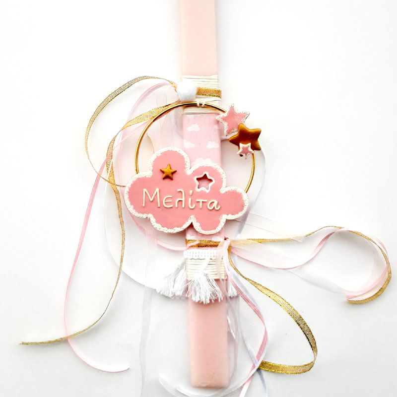 Χειροποίητη λαμπάδα με το όνομα της επιλογής σας, σε συννεφάκια!