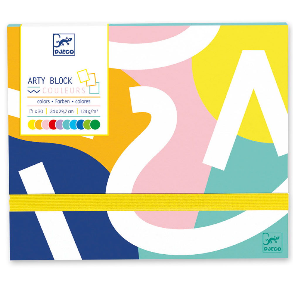 Μπλοκ ζωγραφικής με χρωματιστά χαρτιά σε φάκελο από την εταιρεία Djeco, με θήκη για να αποθηκεύσετε τα ολοκληρωμένα σας σχέδια. Περιέχει 30 φύλλα, σε 10 διαφορετικά χρώματα και κάθε φύλλο ζυγίζει 124g/m² και έχει διαστάσεις 24 x 30 εκ. Κατάλληλο για παιδιά άνω των 4 ετών. Διαστάσεις φακέλου: 32 x 26 x 1,5 εκ