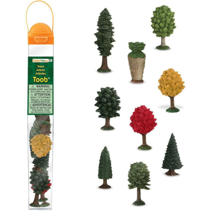Μέγεθος: 3,8 cm μήκος, 3,8 cm πλάτος και 32,5 cm ύψος, αυτό το Toob είναι ένα άγγιγμα μεγαλύτερο από το μέγεθος ενός τυπικού αμερικανικού χάρακα και περιέχει 9 διαφορετικά μοντέλα δέντρων με ύψος από 3,2 έως 9,5 cm.