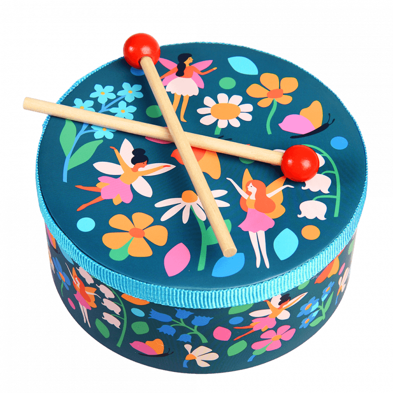 Ετοιμαστείτε να κάνετε λίγο θόρυβο με τις νεράϊδες που χορεύουν! Ένα τύμπανο είναι ένας πολύ καλός τρόπος για να μυήσετε τα μικρά παιδιά στο ρυθμό, την αιτία και το αποτέλεσμα. Περιλαμβάνεται ένα ζευγάρι μπαγκέτες 14εκ και την εικόνα από τις όμορφες νεράϊδες του κήπου.