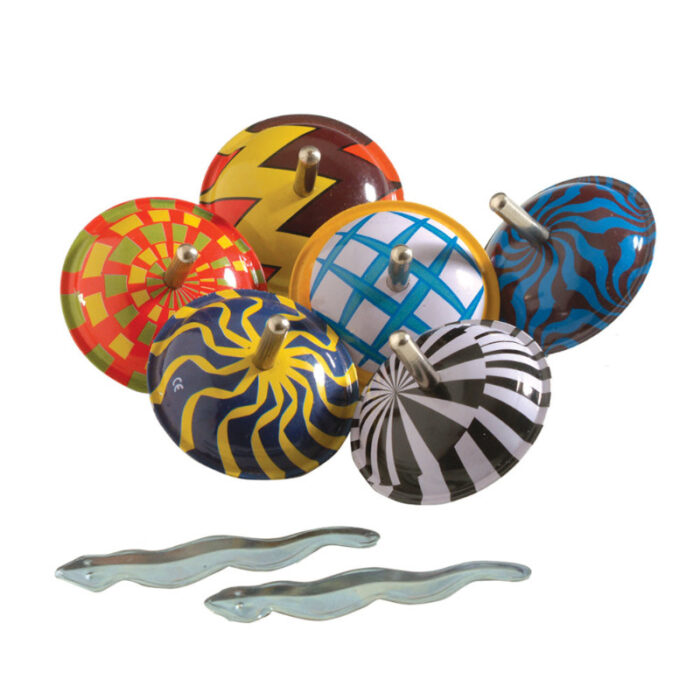 Μεταλλική σβούρα με πολύχρωμα σχέδια, που θα σας εντυπωσιάσουν! Κάντε μια αναδρομή στο παρελθόν με τα κλασικά τσίγκινα ρετρό παιχνίδια Tin Treasures. Θα μπορούσε να αποτελέσει ένα πανέμορφο ρετρώ παιχνίδι, ενός μεγάλου παιδιού (14 ετών και άνω), καθώς και ένα νοσταλγικό δώρο για έναν ενήλικα.