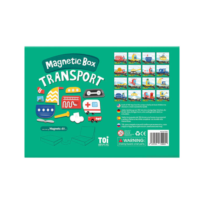 Μαγνητικό βιβλίο που περιλαμβάνει 16 κάρτες διαφόρων οχημάτων-μεταφορικών μέσων και 51 πολύχρωμα μαγνητάκια για ατελείωτους συνδυασμούς! Με αυτό το επιτραπέζιο, θα εκφράσουν τις ιδέες τους και θ’ αναπτύξουν τη φαντασία και τη δημιουργικότητά τους. Διαστάσεις: 26 x 19 εκ.