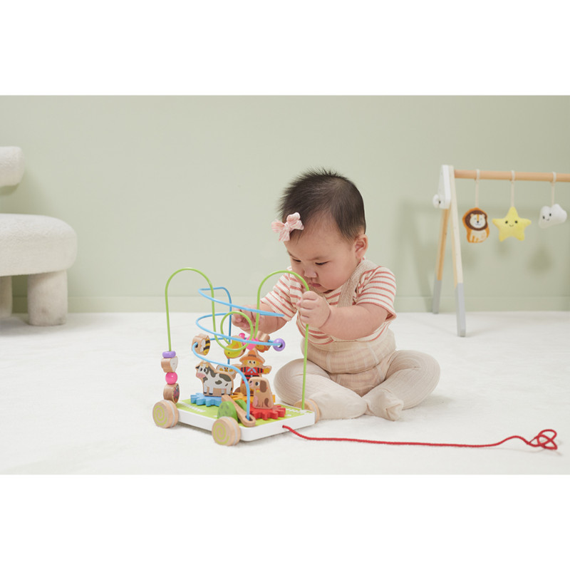 Η βάση του παιχνιδιού είναι ένα λιβάδι με ένα σκιάχτρο, έναν σκύλο και μια αγελάδα. Όλοι οι χαρακτήρες τοποθετούνται σε γρανάζια – τα οποία μπορούν να διαμορφωθούν όπως επιθυμείτε. Ο λαβύρινθος, μέσα από τον οποίο μπορούν να κινηθούν οι χαρακτήρες, είναι μια πολύ ενδιαφέρουσα δραστηριότητα για το παιδί και το πολύχρωμο παιχνίδι σίγουρα θα το παρασύρει στον κόσμο του.
