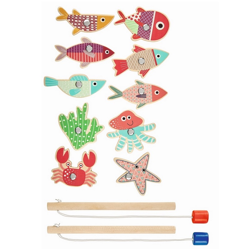Παιχνίδι ψαρέματος από την εταιρεία Moses, με 10 μαγνητικά θαλάσσια πλάσματα και 2 ξύλινα καλάμια ψαρέματος, 1 ωκεανός από ύφασμα, 1 σετ οδηγιών. Εκπαιδεύει παιχνιδιάρικα την επιδεξιότητα και τον συντονισμό χεριού-ματιού και την πρώτη κατανόηση των αριθμών.