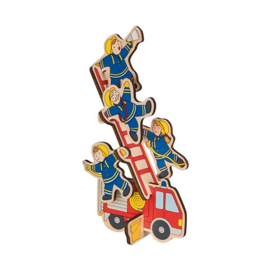 Η σκάλα πρέπει να τοποθετηθεί σωστά στο πυροσβεστικό τμήμα και οι πυροσβέστες πρέπει να ανέβουν στη σκάλα. Απαιτούνται εξαιρετικές κινητικές δεξιότητες. Τέλος, όλα τα κομμάτια πρέπει να τοποθετηθούν πίσω στη θέση τους στον πίνακα παζλ. Παιχνίδι τοποθέτησης από ξύλο.