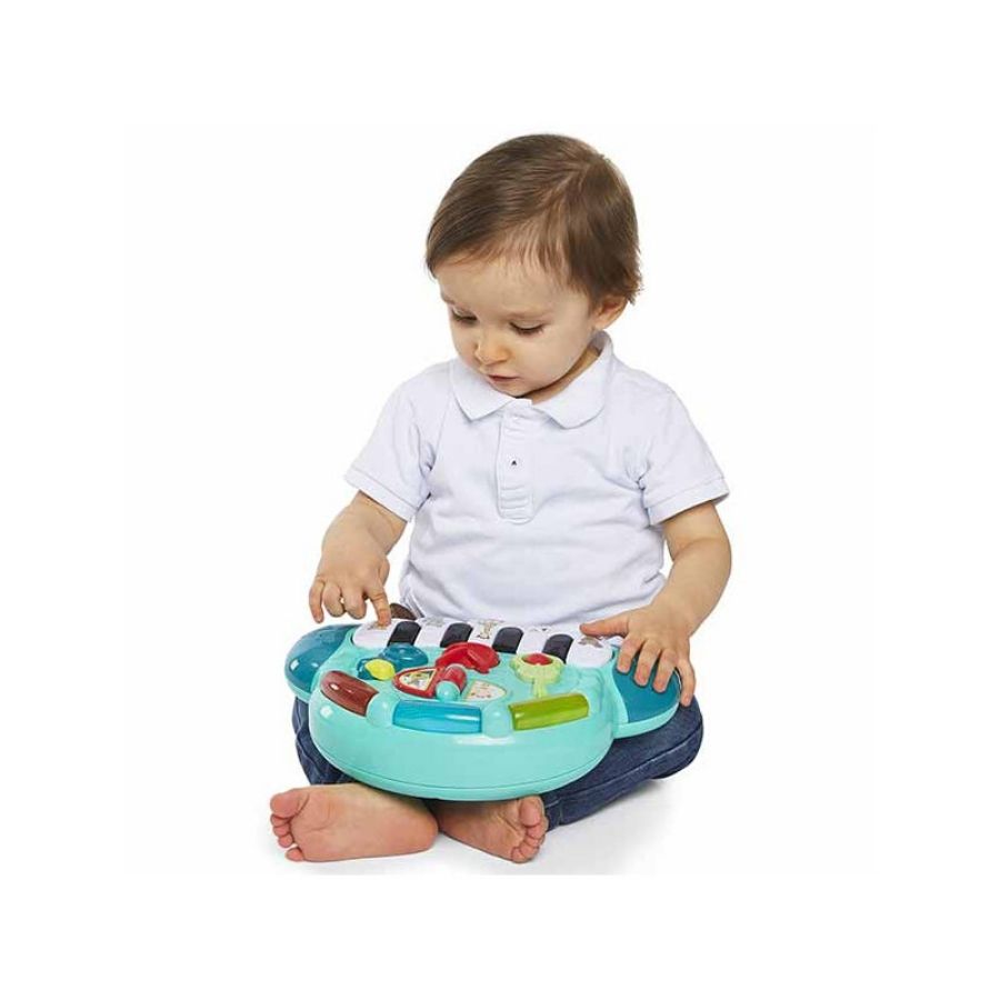 Το μωρό σας θα λατρέψει το υπέροχο πιάνο Sophie la girafe. Όταν το μωρό πατήσει πάνω σε ένα όργανο ή κάποιο κουμπί του πιάνου θα ανακαλύψει διαφορετικά ηχογραφημένα τραγούδια και ήχους από διάφορα μουσικά όργανα. Καθώς το μωρό σας μεγαλώνει, μπορεί να διασκεδάζει φτιάχνοντας τους δικούς του ήχους με τις 5 μουσικές νότες πάνω στα πλήκτρα, αναπτύσσοντας έτσι την ακοή του και τις κινητικές του δεξιότητες.